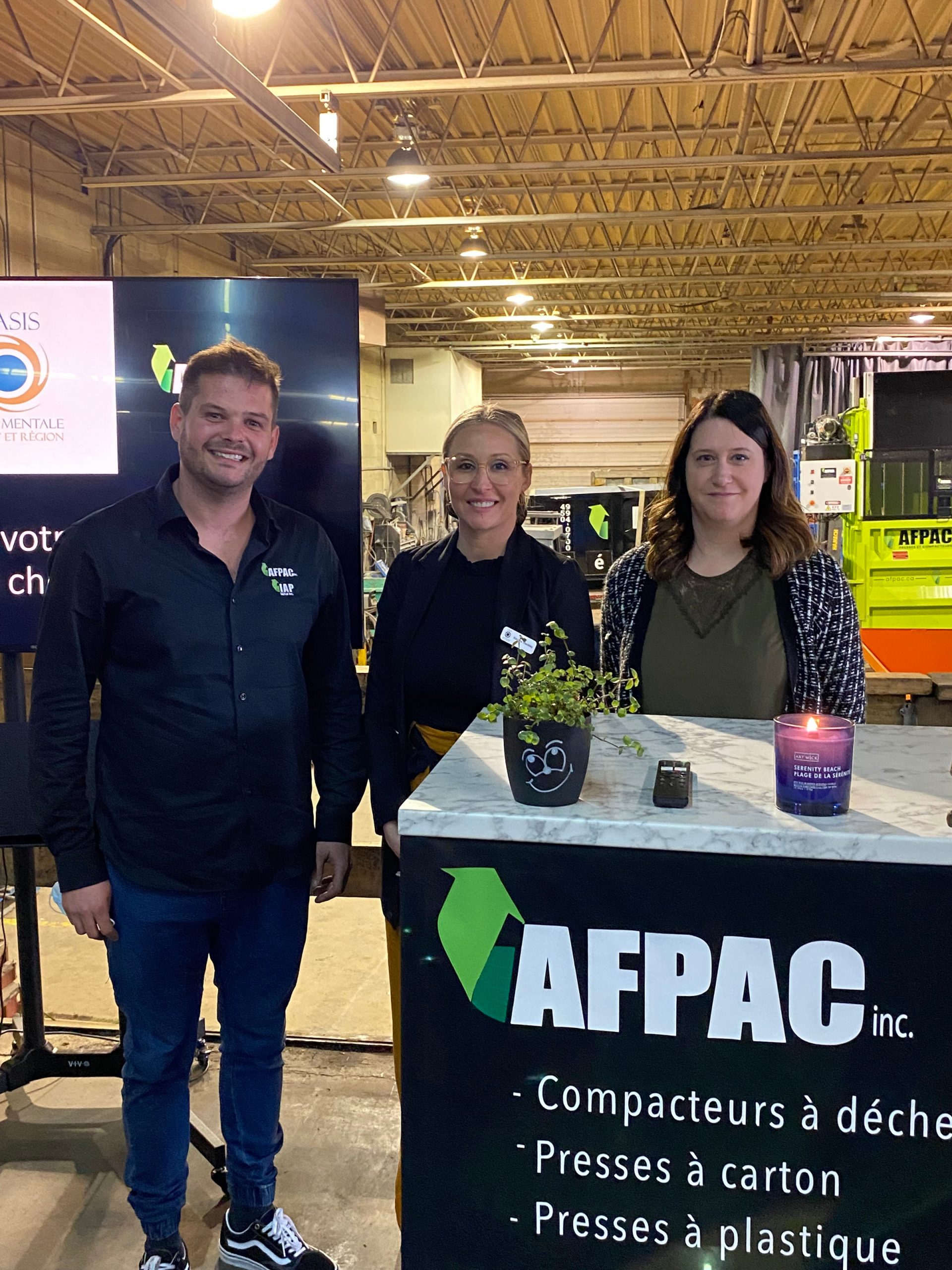 AFPAC est une entreprise qui, quant à elle, se concentre sur la revalorisation des équipements tels que, les presses à carton, compacteurs à déchets et les presses à plastique. Le but est de les remettre fonctionnel pour que les entreprises soient dans de meilleures dispositions en matière de gestion de leurs matières résiduelles. Cette dernière entité est un projet récent pour lequel M. Favreau a dû acquérir un terrain supplémentaire pour y construire de nouvelles installations présentes et à venir.