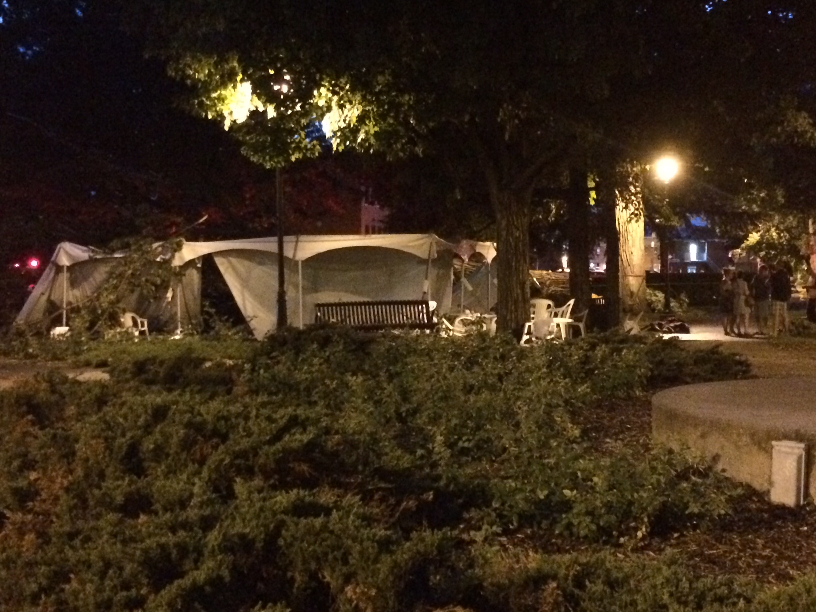 Un arbre est tombé sur un chapiteau du côté du parc Miner, à Granby. Une dizaine de personnes ont été blessées dans cette histoire. Entre dix et 15 personnes se trouvaient à l’intérieur du chapiteau lorsque l’arbre s’est effondré. 70 autres personnes étaient à l’extérieur.