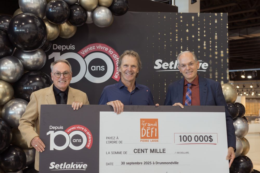 AFFAIRES. Afin de célébrer son 100e anniversaire de fondation, l’entreprise de meubles et d’électroménagers Setlakwe a dévoilé un legs communautaire de 100 000 $ pour soutenir des projets liés à la santé, à la jeunesse et à l’engagement collectif. Ce don majeur à la Fondation du Grand défi Pierre Lavoie sera réparti entre les villes de Thetford Mines, Drummondville et Granby, là où l’entreprise possède des magasins.