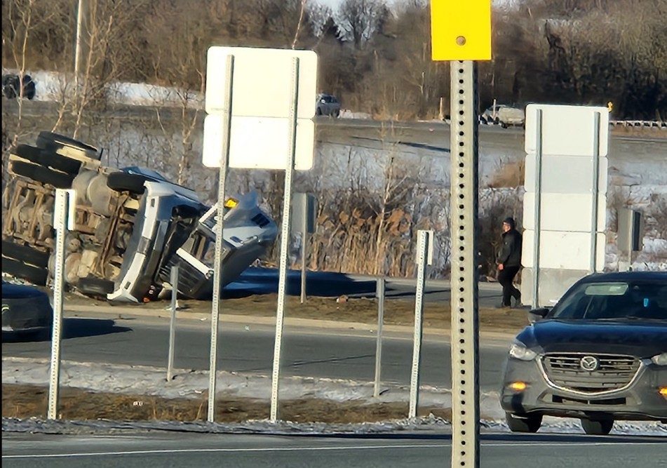 FAITS DIVERS. Un camion semi-remorque s’est renversé dans la bretelle est de la sortie 68, de l’autoroute 10, à Saint-Alphonse-de-Granby, lundi matin, vers 8h.