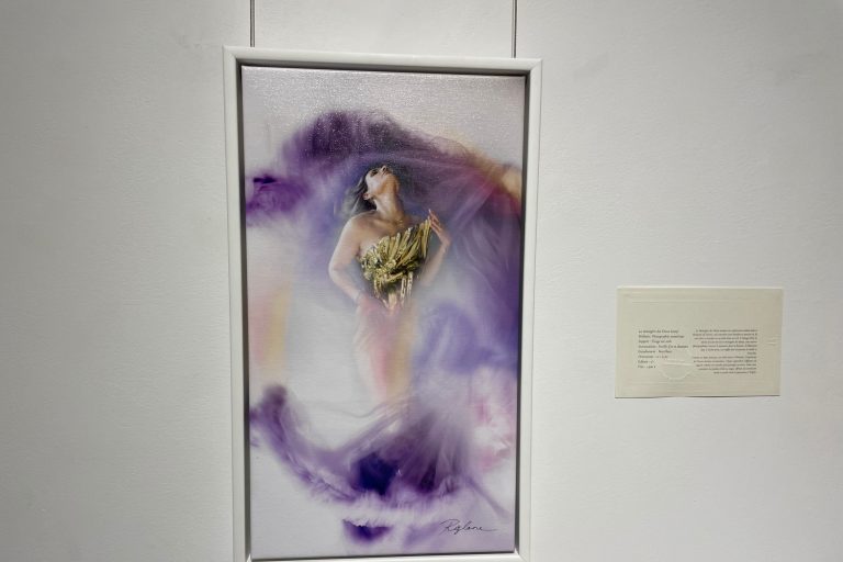 Il s’agit de la première exposition d’envergure pour l’artiste, qui fait de la photographie artistique (aussi appelée photographie Fine Art) depuis 2021. Ses œuvres mettent en scène des corps féminins entrelacés de voiles et autres éléments, avec des effets visuels recherchés qui en font des tableaux fascinants. “Le féminin et le nu font partie d’une quête personnelle qui guide ma démarche artistique”, énonce la photographe pour résumer son approche.